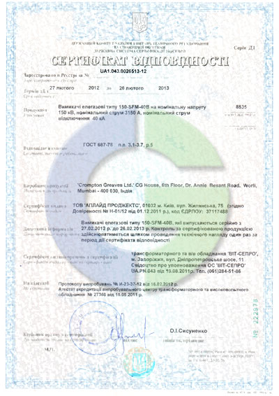 CG Power Systems представлена в Украине через эксклюзивного дистрибьютора - Электротехническую Компанию «Система». Начав сотрудничество с CG в 2010 году ЭК «Система» уже успела зарекомендовать себя при реализации ряда крупных проектов обеспечив поставку, монтаж и наладку высоковольтного оборудования CG для ряда крупных клиентов. На текущий момент оборудование CG успешно эксплуатируется в сетях НЭК «Укрэнерго», ПАО «АЭС Киевоблэнерго», Киевэнерго, ОАО «Одессаоблэнерго», ОАО «Херсоноблэнерго», КП «Львовтеплокоммунэнерго» и других, получив положительные отзывы эксплуатирующих служб.